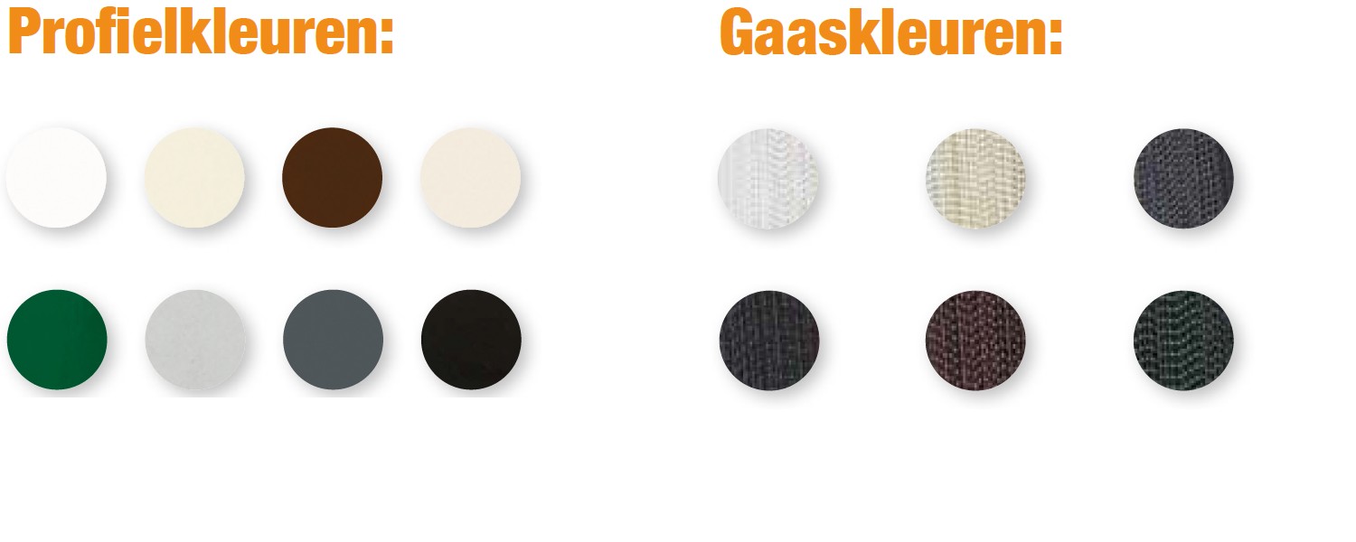 Onze horren zijn van Italiaans design en in 8 verschillende profielkleuren en 6 verschillende gaaskleuren te leveren. Het systeem is geluidsarm en perfect sluitend door middel van een magneet.
